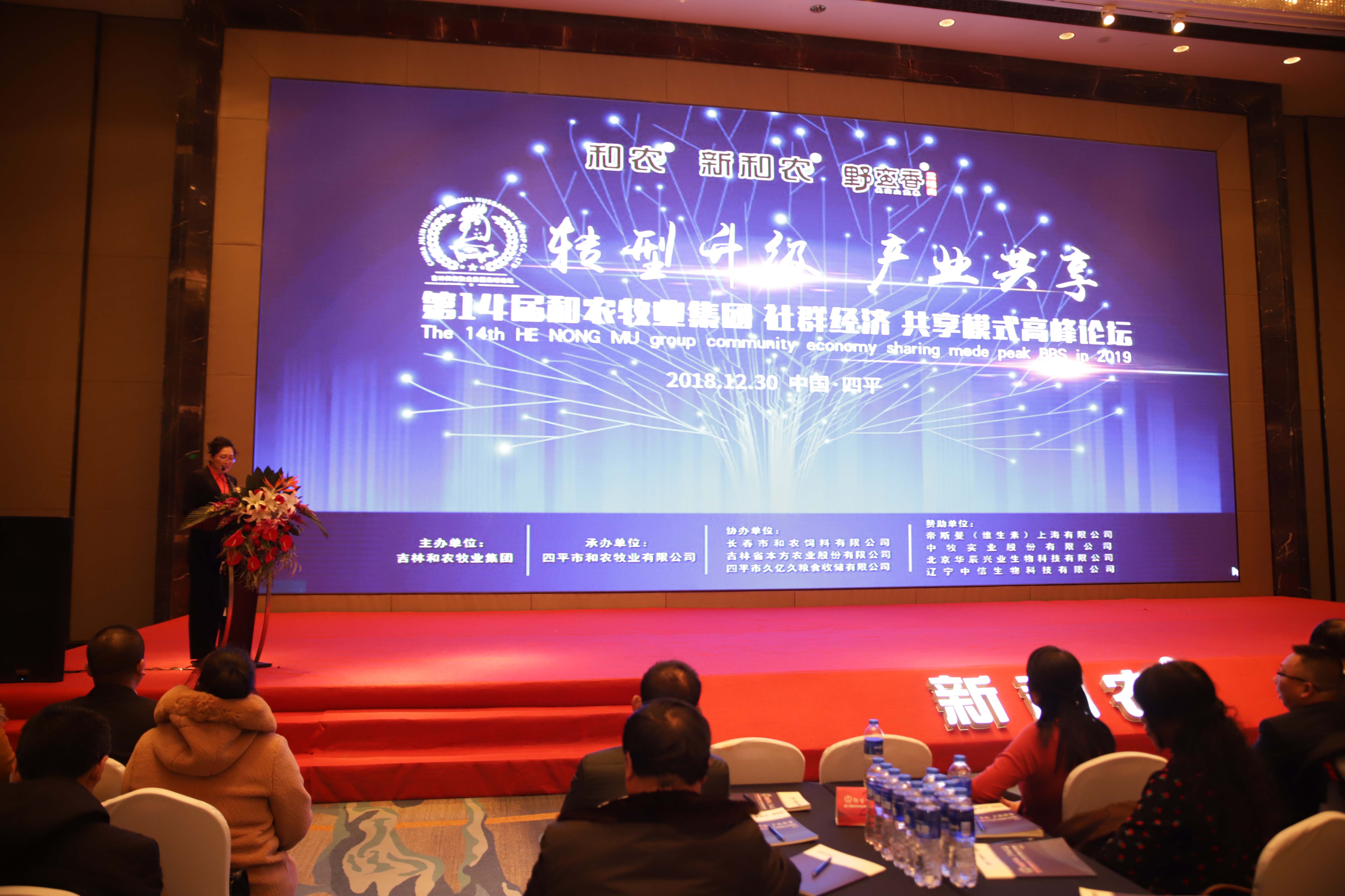 由吉林和農(nóng)牧業(yè)集團(tuán)主辦,四平和農(nóng)牧業(yè)承辦,長春和農(nóng)、本方農(nóng)業(yè)、久億久糧食收儲(chǔ)協(xié)辦,帝斯曼、中牧實(shí)業(yè)、北京華辰興業(yè)生物、遼寧中信生物贊助支持的 "轉(zhuǎn)型升級(jí) 產(chǎn)業(yè)共享" —— 第十四屆和農(nóng)牧業(yè)集團(tuán) 社群經(jīng)濟(jì) 共享模式 高峰論壇在四平萬達(dá)嘉華酒店隆重舉行。來自東北三省300余位企業(yè)優(yōu)秀代表參加了主題為“轉(zhuǎn)型升級(jí) 產(chǎn)業(yè)共享 社群經(jīng)濟(jì) 共享模式”的高峰論壇。